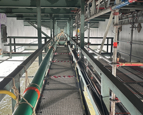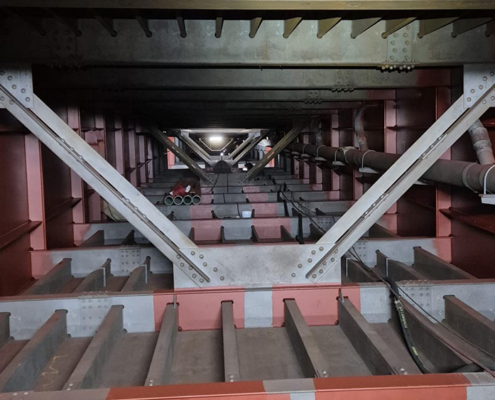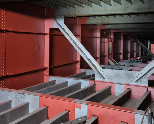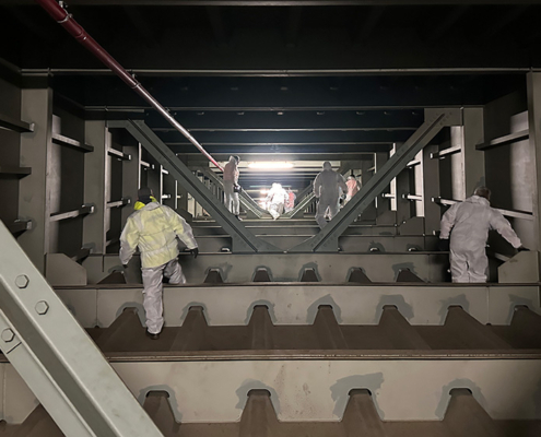 2 Hohlkästen, jeweils ca. 11.000m², wurden von Innen entschichtet. „Besonderheit“ der Altanstrich im Hohlkasten war Asbest, PAK, Blei und PCB belastet.