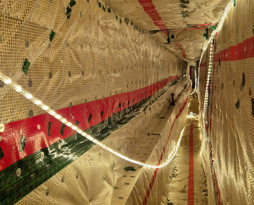- Korrosionsschutztechnische Bearbeitung der gespreizten Seile in den Verankerungskammern ( 244 Seile mit ca. 2200 lfdm) und der Ankerkörper in den hinteren Verankerungskammern (244 St)