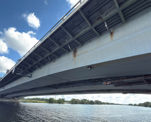 Wir haben derzeit den Auftrag für die korrosionsschutztechnische Instandsetzung der Pylone und Tragkabel, sowie für die Beschichtung der neuen Hängerseile!