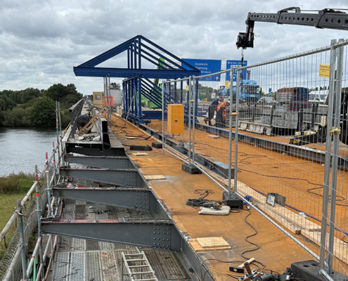 Die anderen 5 Pfeiler sind stahlbau- und korrosionsschutztechnisch fertiggestellt.